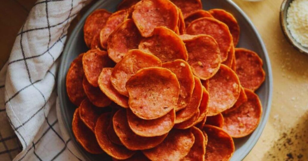Pepperoni chips are a modern, keto-friendly snack that originated as a creative way to enjoy the bold flavors of pepperoni without the carbs. These snacks have gained popularity among low-carb takers and keto dieters as a satisfying alternative to traditional chips. These chips are inspired by the crispy texture of baked pepperoni, often used as a topping for pizzas or salads. With just one ingredient and minimal effort, they have become a staple in keto community. Nutritionally, these pepperoni chips are not only low in carbs but also high in protein and healthy fats, making them the perfect guilt-free snack. So if  you want a plate get ready in just 15 minutes! Let’s dive into the recipe and make these irresistible chips.